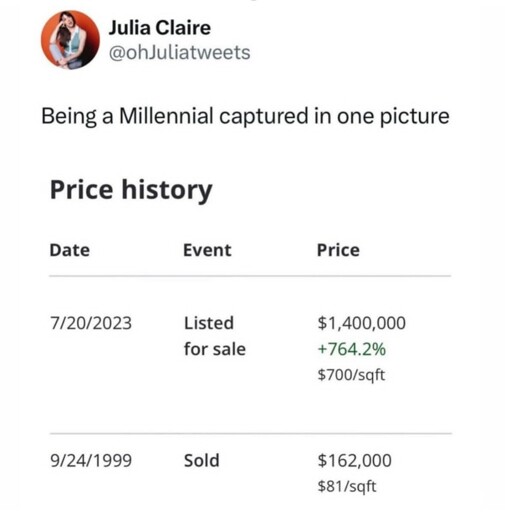 Nothing says ‘Millennial experience’ like watching the same house age better financially than you 😅📈