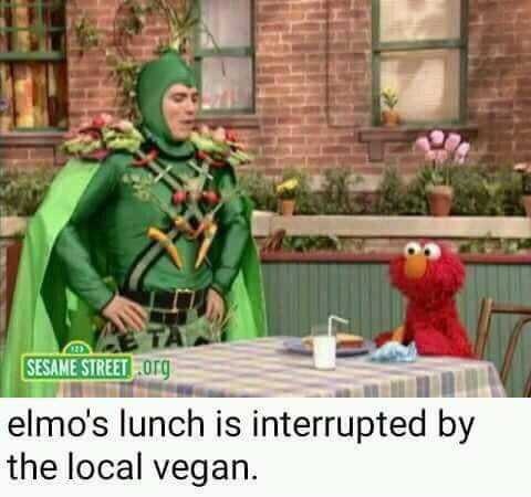 Maybe if Elmo wanted to be left alone he would stop contributing to mass animal oppression.