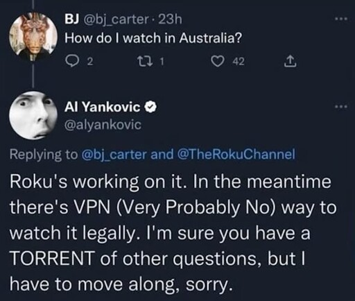 Yeah, I agree with Weird Al, you USE the NET to find a legal way but we’ll just have to wait for Roku.