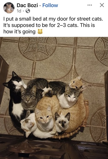 New religion discovered. “There was only enough cat bed for 2 or 3, but instead it held 8 cats”