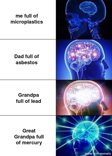 minus-squareDeme@sopuli.xyzlinkfedilinkarrow-up4·19 days agoYour grandchild full of PFAS Your great grandchild full of PFAS Your great great grandchild…