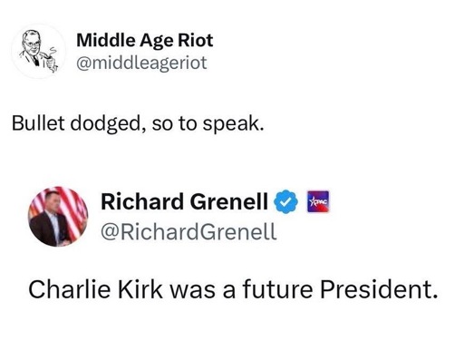 This isn’t discussed nearly enough. He was 100% groomed to be the next president. Do any of you actually understand Charlie Kirk would have been the American president. That is not talked about enough. Fun to laugh at, sure. But it was an actual reality. There were a lot of eggs in that basket. I can’t prove it, but the assignation of Charlie Kirk may have significantly saved a lot of lives.