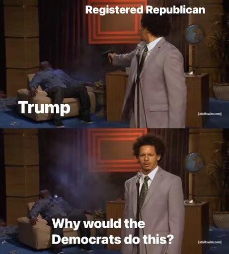 Except that he’s apparently been registered as a Republican since 2021…and he didn’t enter the event.