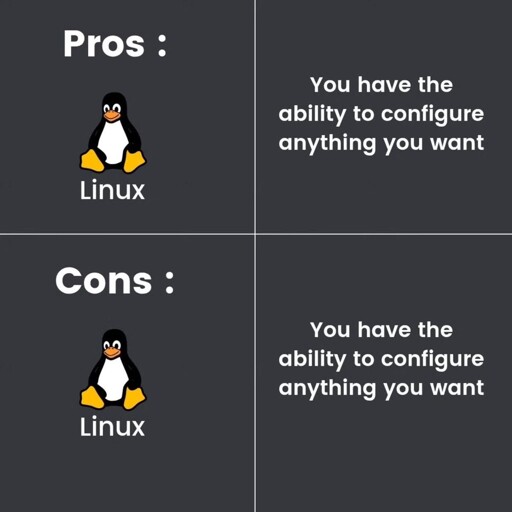 Weirdly I love this about Linux but fucking hate it about android. Providing PC support to a newbie Linux user is a joy. It’s a fun learning experience. With Android it’s a junkie trying to get their fix and need you to unfuck their Skinner box.