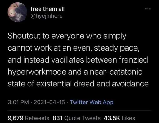 And then you ask the system when the next work cycle is and it just shows a loading bar that gets stuck at 13% before finishing the last 87 (I think? or whatever, I’m gay I can’t do math and not getting a calculator for a joke) in half a second with no warning.
