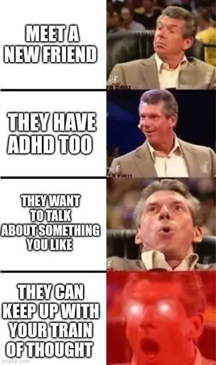 Stamets@lemmy.dbzer0.com to ADHD memes@lemmy.dbzer0.comEnglish · 7 days agoAnd then you both forget each other existlemmy.dbzer0.comimagemessage-square0linkfedilinkarrow-up113arrow-down10