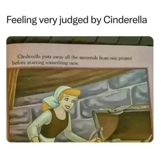 Listen, Cinderella is the organized, productive power woman we should all aspire to be, but we are but mere mortals who can only do our best. And no, she would never judge you for being a messy bish.