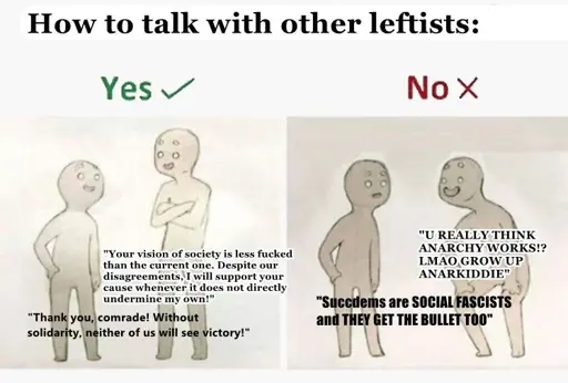but when someone says to you “I’m an anarchist, I organize to alleviate suffering at the grassroots level”, the correct response is “Right on, comrade”, even if you think state institutions are the optimal solution.