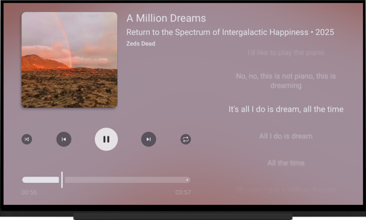 I occasionally use the Jellyfin app, which is the best player I’ve found for TV, but it is not really built for audio and is cumbersome for searching, on-the-fly playlist, and continuous play.