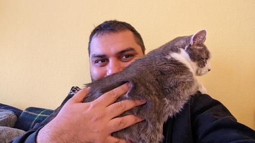 One of our cats likes to give my husband “hugs.” She climbs up on his shoulder just like that. He is definitely her person.