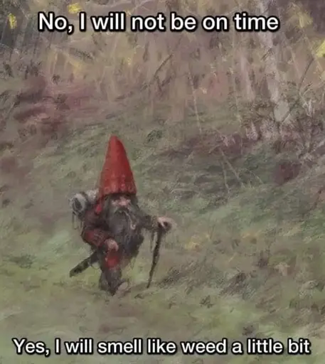 minus-squarebampop@lemmy.worldlinkfedilinkEnglisharrow-up10·10 days agoThe artwork is called “Unfortunate walk”. Doesn’t say who it’s going to be unfortunate for, but my feeling is you don’t want to fuck with gnomes. I think it’s the hats. That’s not a hat you’d wear if you felt like you had anything to fear.