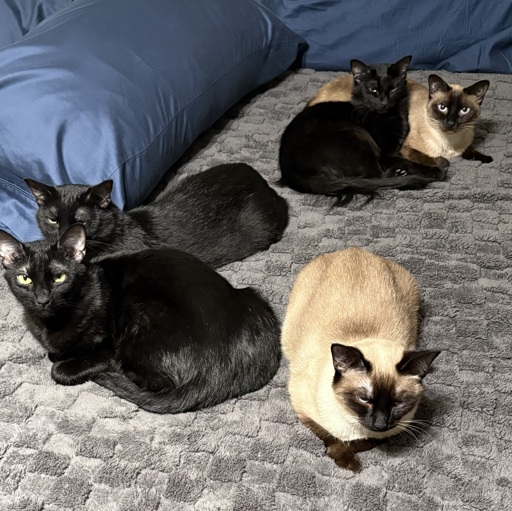 OP has ensured a delicate balance of light and black fur that averages out to the exact same shade of grey as the bedding