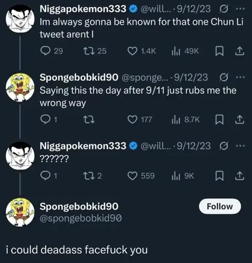 arrow-up146arrow-down1imageaverage twitter conversationNSFWsopuli.xyzSSUPII@sopuli.xyz to Lemmy Shitpost@lemmy.world · 13 days agomessage-square4linkfedilink