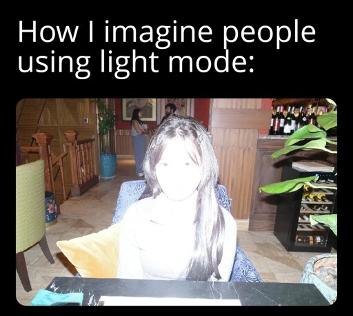 That is genuinely one of the reasons why I use light theme. Like, have you see how bright the fucking sun is? My light-themed screen is still a joke compared to looking outside the window. So, I’m trying to help along my circadian rhythm by at least somewhat simulating the sun on my screen.