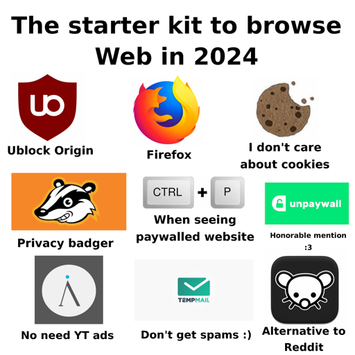 Tux@lemmy.world to memes@lemmy.worldEnglish · edit-21 year agoStarter Kit to browse Web in 2024/2025 (Must-have)lemmy.worldimagemessage-square9linkfedilinkarrow-up14arrow-down10file-text