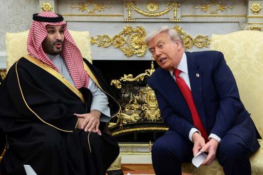 Donald Trump welcomed Mohammed bin Salman to the White House on Tuesday for the Saudi Crown Prince’s first visit to Washington since the murder of Jamal Khashoggi. The president berated a reporter who asked about the killing.