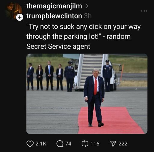 100%, that’s it. We are just weaponizing it back at him and MAGA at the same time as they are also having to manage the Pedo thing. We are trying to either make his brain explode, or make MAGA turn on him en masse, which would have the almost immediate effect of causing catastrophic and irreparable damage. Also it might turn into some Lord Of The Flies type shit for a second, which would be a nice bonus. He has put almost everybody in the country through indirect or direct hardship, pain, stress, etc. for his own fucking enjoyment mostly. It’s tine for him to feel under pressure. It’s time for him to lose everything. Which is what this is about. Enough is enough.