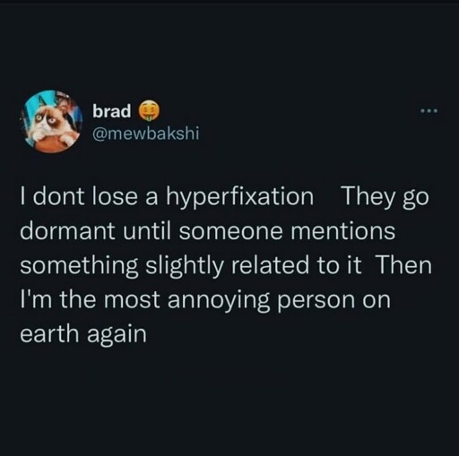 LadyButterfly she/her@piefed.blahaj.zone to Autism@lemmy.worldEnglish · 3 days agoWhat's a good hyperfixation you've had?piefed.cdn.blahaj.zoneimagemessage-square10linkfedilinkarrow-up1263arrow-down15