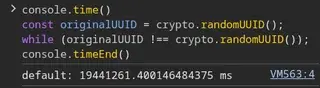 The console line shows that a matching UUID was apparently found after some amount of time, which shouldn’t be possible, implying some fuckery with the random number generator.