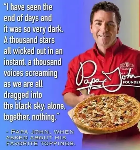 themaninblack@lemmy.world to memes@lemmy.world · 10 days agoPapa Johnlemmy.worldimagemessage-square23linkfedilinkarrow-up1403arrow-down113