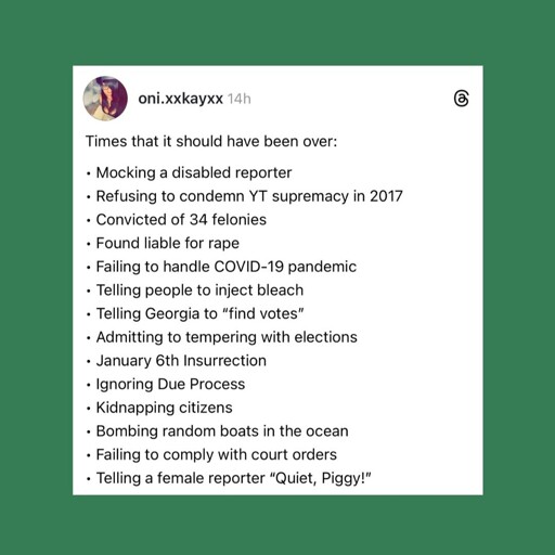 LadyButterfly she/her@piefed.blahaj.zone to Political Memes@lemmy.worldEnglish · 10 days agoAll of them...piefed.cdn.blahaj.zoneimagemessage-square81linkfedilinkarrow-up1833arrow-down112