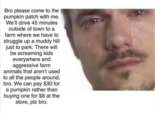 minus-squarestinky@redlemmy.comlinkfedilinkEnglisharrow-up10·4 days agoPumpkin patches may not be for you