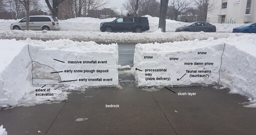 Usually, its from the freeze/melt cycle forming giant blocks of ice somewhere on the road … then the plow pushing a giant chunk right onto your driveway. Best time for this is usually at the end of winter when it’s constantly thawing then refreezing at night.