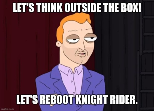 Dammit no, yesterday I woke up with the idea of a knight rider reboot where Kitt is a barely functioning cyber truck, Nic Cage is a 25 year old Michael and the script is 100% AI written.