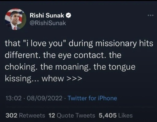 Striker@lemmy.worldM to Lemmy Shitpost@lemmy.world · 2 years agoWhat a beautiful romantic comment by Rishi Sunaklemmy.worldimagemessage-square2linkfedilinkarrow-up10arrow-down10