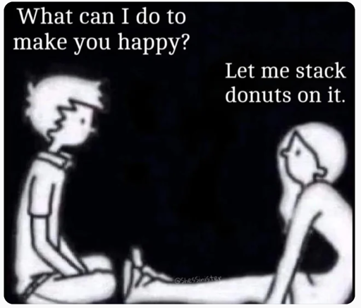 agreed. It might turn into a real thing. Dunkin Donuts could sell a “stack” of say 6 donuts, but it would not be straight top to bottom, but instead curved to better accomadate an erect penis