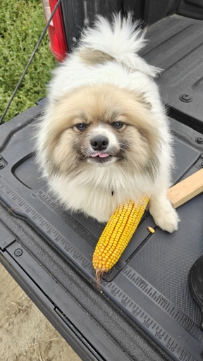 My wife’s fluffy white dog I drive around with for work. He likes to eat higher moisture corn and cow shit.