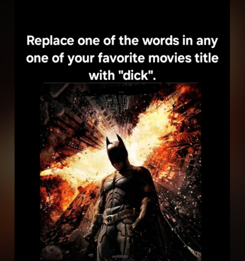 Schindlers dick, The never ending dick, Willy wonka and the dick, Dick unchained, How to train your dick, Dicks on a plane, Dickbusters, The wizard of dick, Beauty and the dick, the little dick, Dick club, The silence of the dick, American history dick, Raiders of the lost dick, Requiem for a dick, No country for old dick, Finding dick, Monte python and the holy dick, Dick me if you can, Million dollar dick, The dick hunter, Texas chainsaw dick, Night of the living dick, Rosemary’s dick, The bride of dickenstien, Bram strikers dickula, Interview with the dick, House of 1000 dicks, Revenge of the dicks, Dick academy,