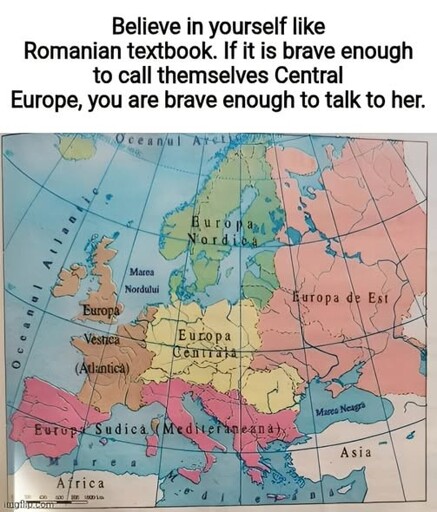 Each country had their own version of “communism”. These versions had similarities but also their own particularities. The version that happened in Romania was heavily based on somewhat ‘brainwashing’ the people to believe their nationality (and roots) is somewhat different than the rest of the surrounding countries. This was done to counter the pesky Russian influence. This is what you see in the original picture. It was teaching the kids in school that the country is associated with Central Europe (closer to german based area) rather than pesky Russians. :P