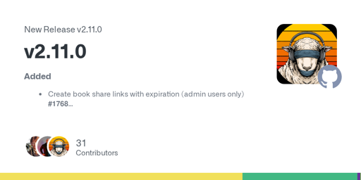 arrow-up11arrow-down1external-linkGithub advplyr/audiobookshelf v2.11.0plus-squaregithub.comEideen@lemmy.world to Selfhosted@lemmy.worldEnglish · 1 year agomessage-square0linkfedilink