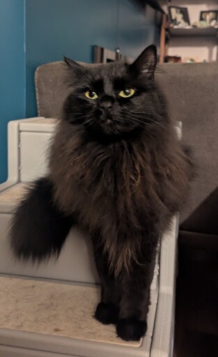 She’s pretty aloof most of the time, but when I’m in my computer chair she will come sit on my lap and make biscuits or just drape over my arm.