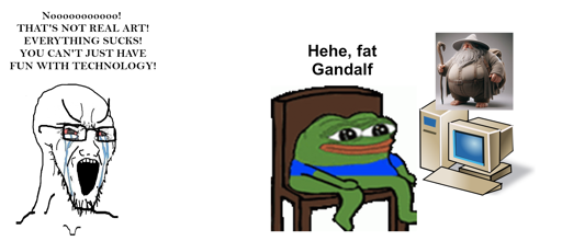 Roflmasterbigpimp@lemmy.world to Lemmy Shitpost@lemmy.world · 1 year agoNot everything needs to be Artplus-squarelemmy.worldimagemessage-square0linkfedilinkarrow-up11arrow-down10