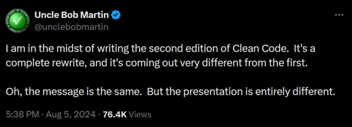 arrow-up10arrow-down1imageWhatever 'Clean Code' you write now, it'll be shit eventually and in need of a complete rewriteprogramming.devRonSijm@programming.dev to Programmer Humor@programming.devEnglish · 1 year agomessage-square2linkfedilink
