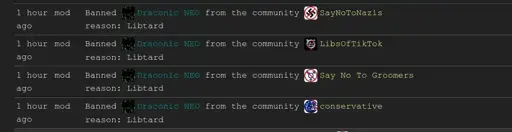 Ye Power Trippin' Bastards@lemmy.dbzer0.com•Only mod of [email protected] bans for simple opposition