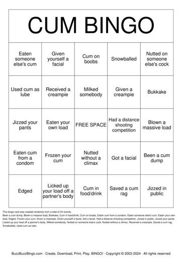 no bingo😒 i marked with red the ones i’m not sure apply to the receiving end, and i don’t know how many guys make a bukkake